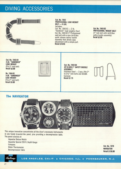 The Navigator solidifed Aquastar as not merely a watch company – but as a pioneer in dive instrumentation. By introducing this multi-functional system, Aquastar became the first company to design tools specifically for professional divers.
