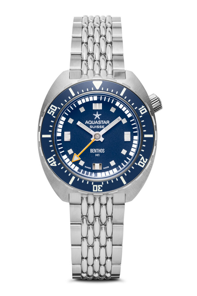 Aquastar’s iconic diver returns with a limited edition in blue, a tribute to one of the world’s most quintessential dive watches from 1970The new Benthos H1 blue Edition continues Aquastar’s earliest traditions of building innovative and ultra-capable tool watches that could cater to the needs of mariners, professional divers, and ocean conservationists. And while the original Benthos was known for its impressive depth resistance and unique center-mounted chronograph functionality, the H1 retains the marked capability and signature crown position of the Benthos but in a more streamlined and economical time-only format.