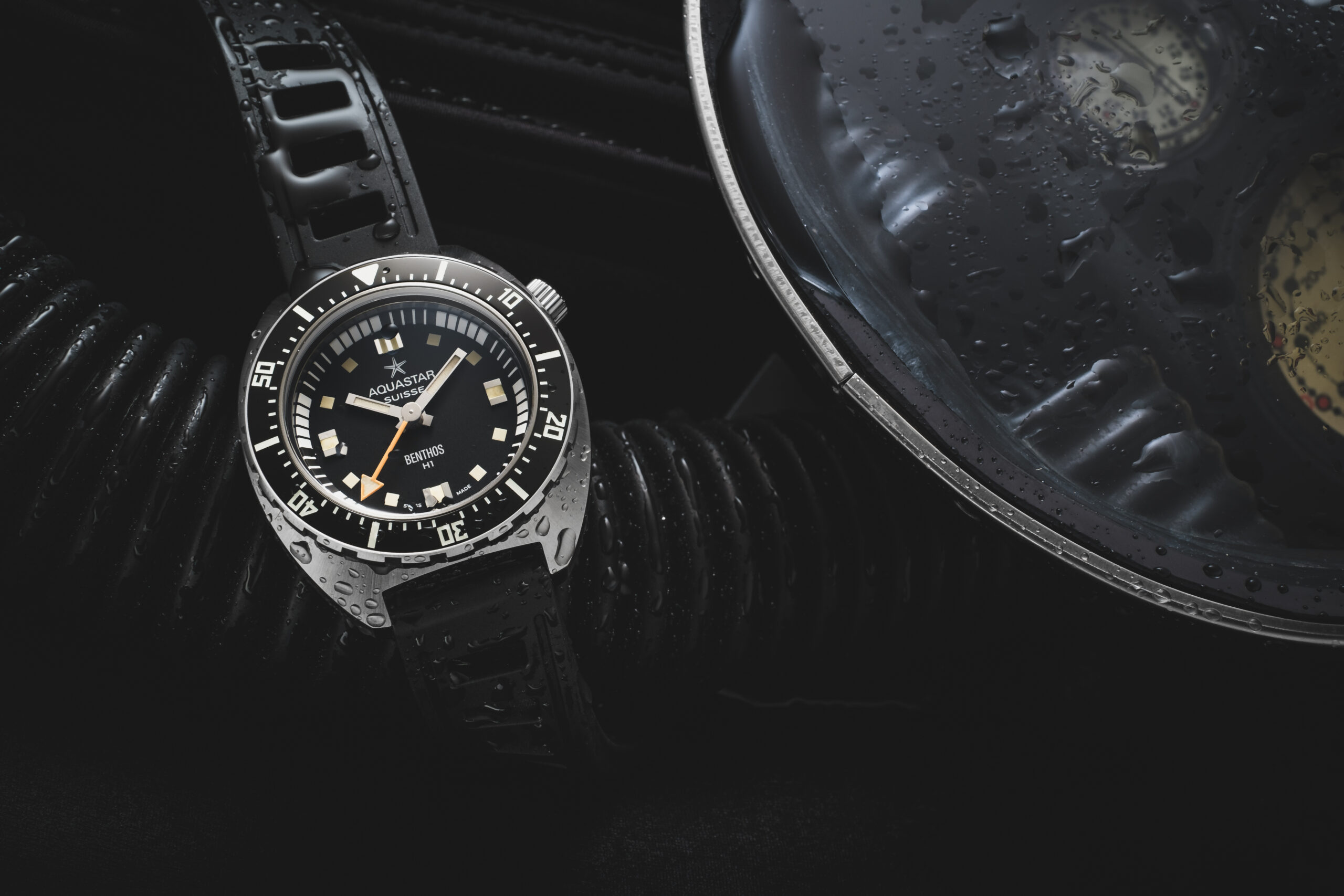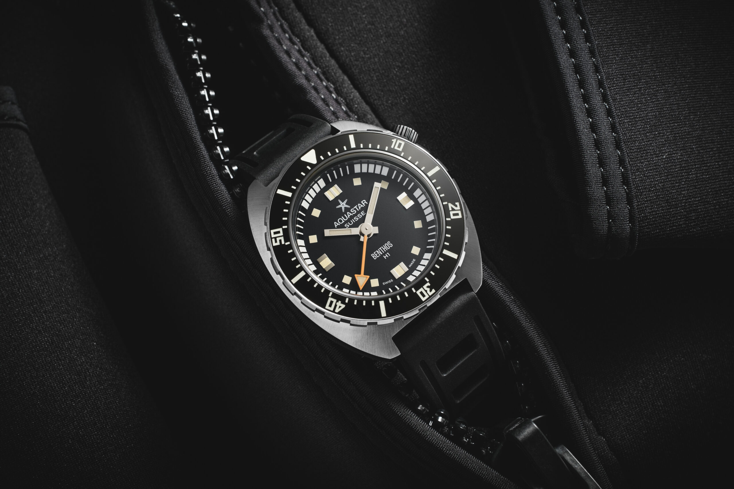 2023 marked the 60th anniversary of the Aquastar story. To kick off these celebrations, the venerable Swiss tool watchmaker is announcing its tribute to one of the world’s most iconic dive watches ever made, and a flagship in the Aquastar archive: the long-anticipated Benthos Diver. In winter 2023, Aquastar is introducing the Benthos Diver H1 (Heritage Chapter 1) — a striking, 3-hand dive watch that retains the visual cues, capability and dimensions of the pioneering Benthos 500 from 1970, which was the world’s first dive watch achieving 500 meters of depth resistance without a monobloc case design. The mighty Benthos also enjoyed the distinction of being one of the few dive watches approved in the U.S. Navy diving manual throughout the 1970s.