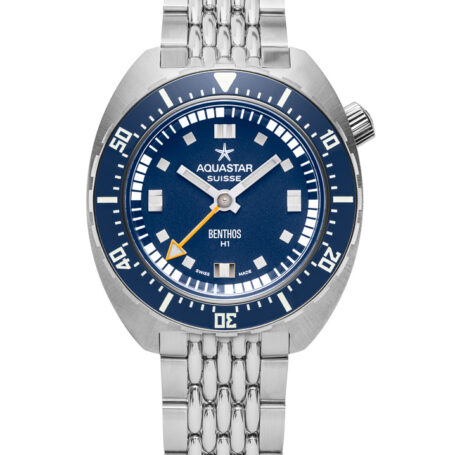 Aquastar’s iconic diver returns with a limited edition in blue, a tribute to one of the world’s most quintessential dive watches from 1970The new Benthos H1 blue Edition continues Aquastar’s earliest traditions of building innovative and ultra-capable tool watches that could cater to the needs of mariners, professional divers, and ocean conservationists. And while the original Benthos was known for its impressive depth resistance and unique center-mounted chronograph functionality, the H1 retains the marked capability and signature crown position of the Benthos but in a more streamlined and economical time-only format.