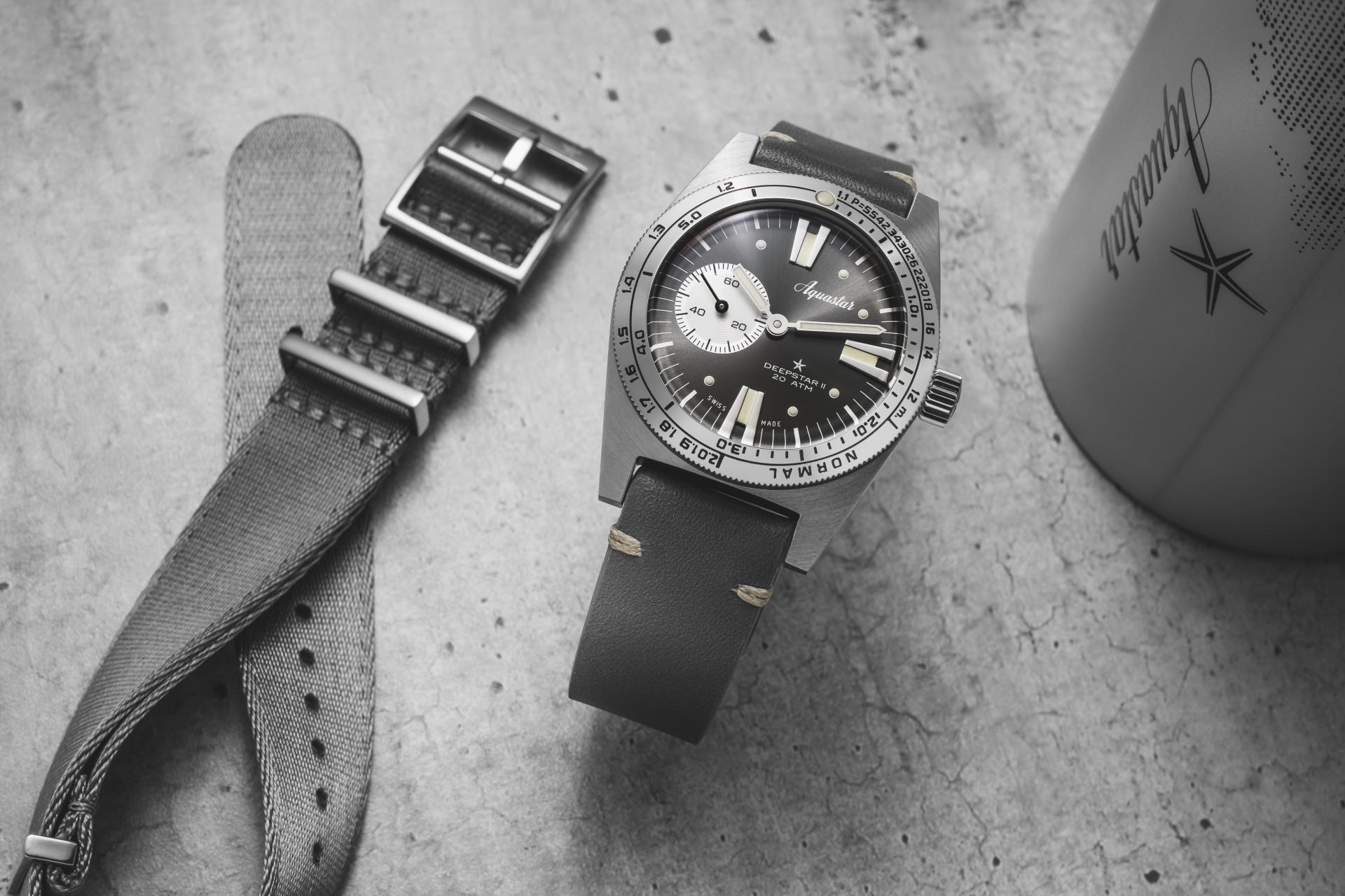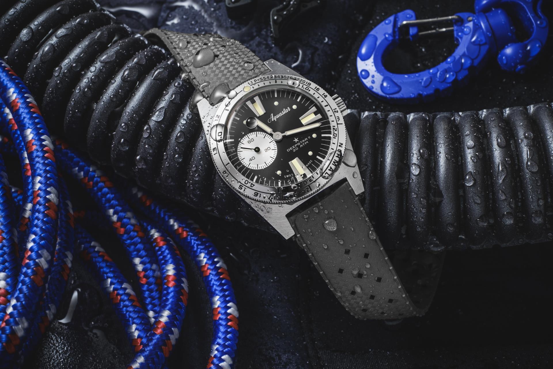 Housed in an eminently wearable 37mm stainless steel case, the new Deepstar II retains the function-first ethos and proportions of the pioneering Deepstar Chronograph from 1962, as well as two of Aquastar’s key identifiers: the rotating timing bezel bearing the brand’s own “no decompression” table used to time repeated dives (the first and only of its kind). It also features the emblematic “cyclops” style mono-compax counter originally devised by Aquastar founder and innovator Frederic Robert. Unique to the Deepstar II, this detail now houses the running seconds register at 9:00. Like the Deepstar Chronograph, the Deepstar II bears 200 meters of water resistance, and is powered by a top-grade Swiss-made automatic movement.