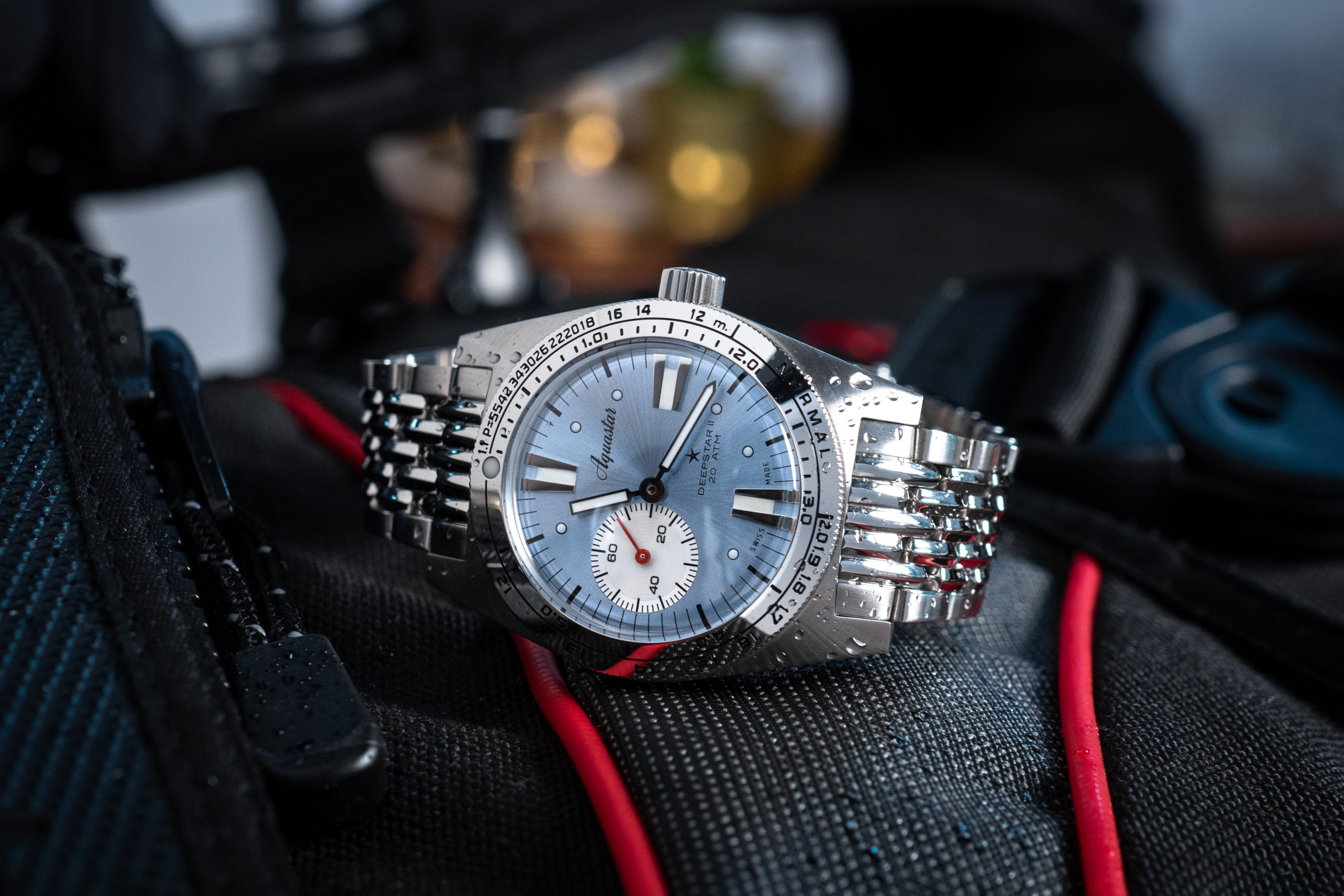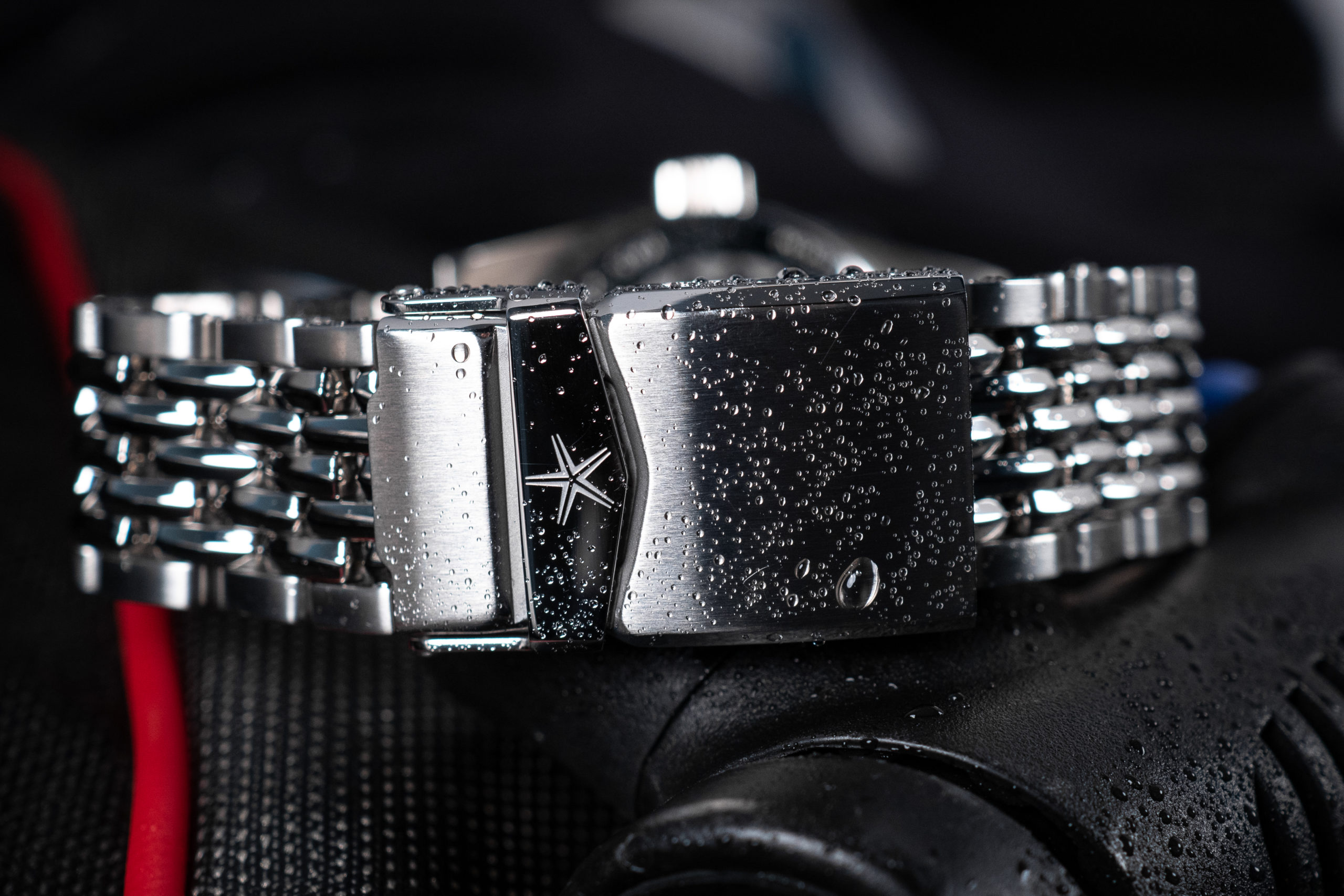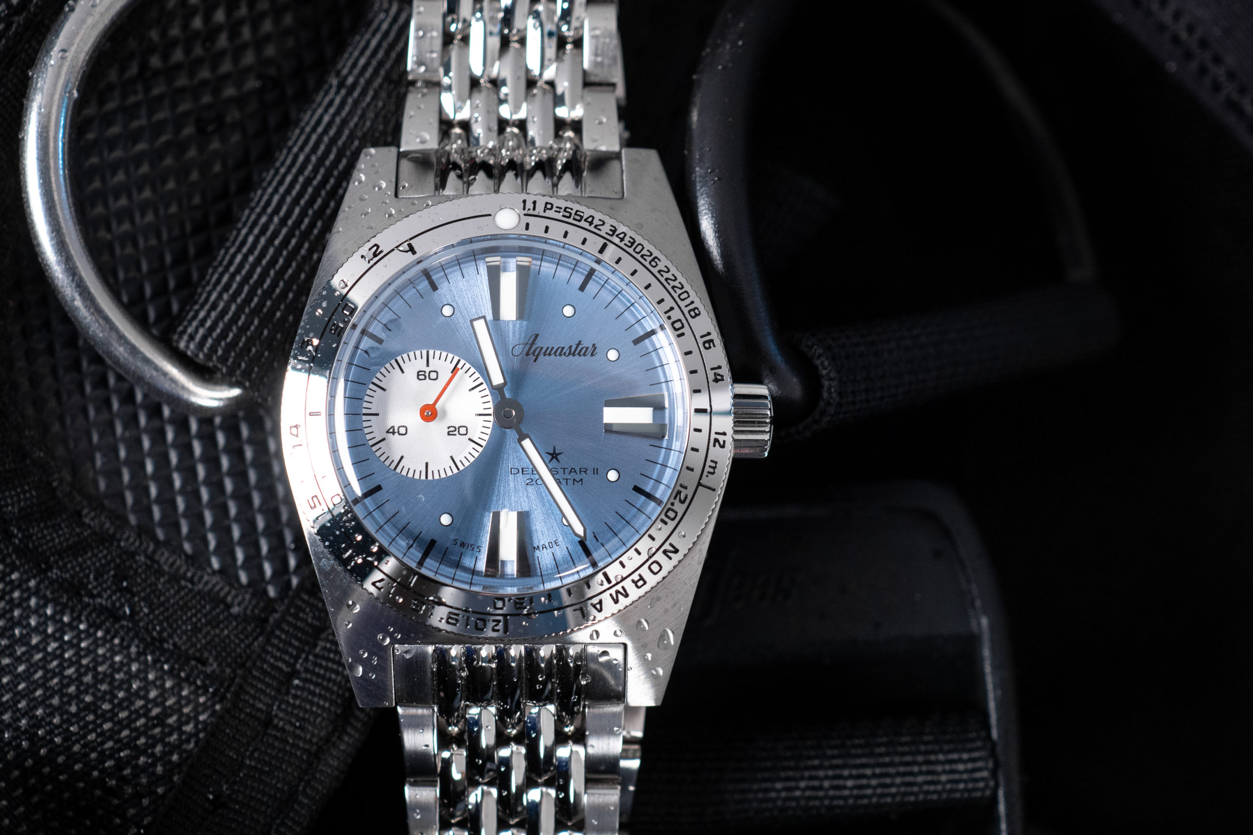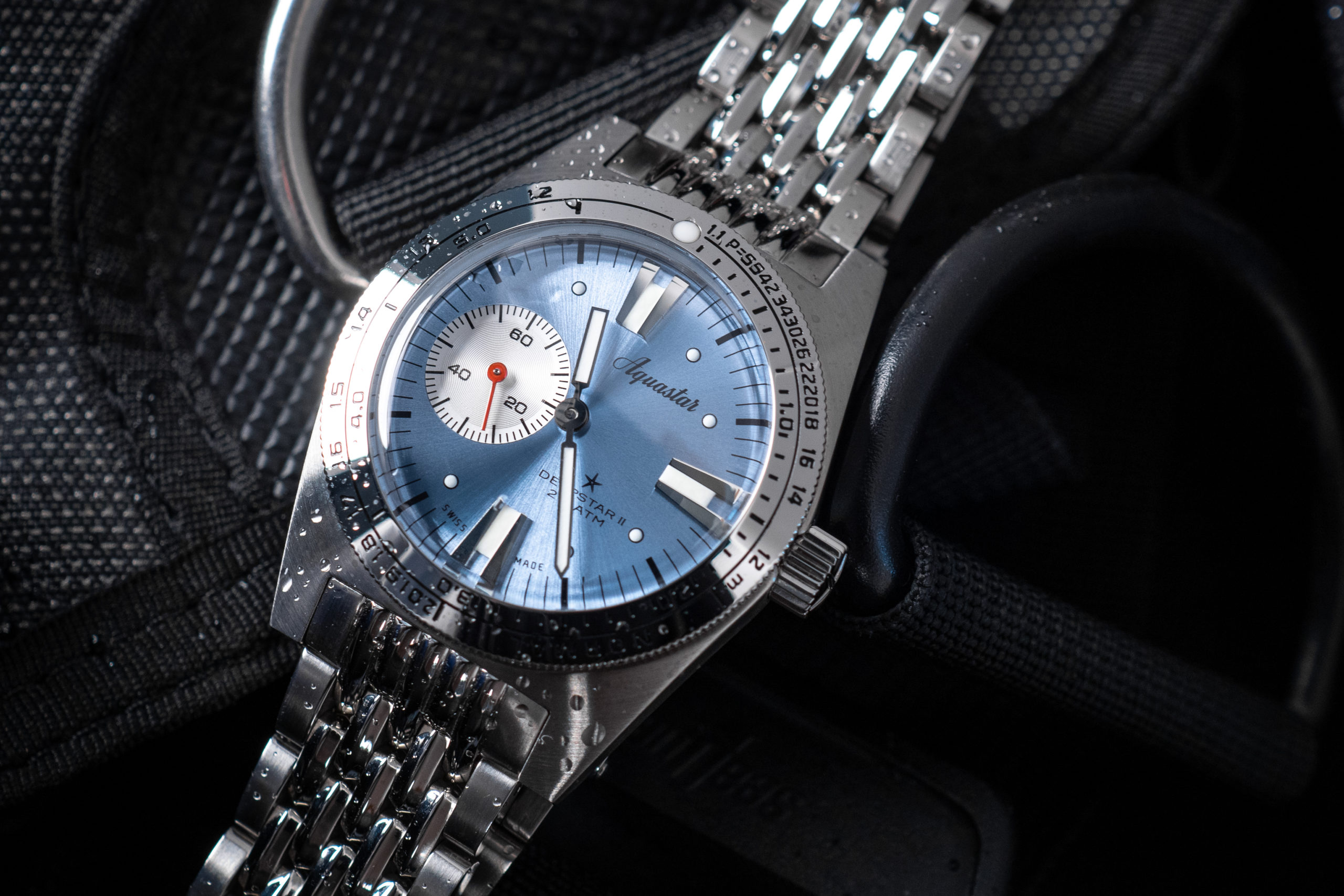 Complete with a running seconds indicator at 9:00 in our distinctive "cyclops" totalizer, it retains the unmistakable design language of the classic Deepstar chronograph, just as founder Frederic Robert might have once envisioned it.Indeed, the Deepstar II 'Polarstar' is just what many Aquastar fans have been asking for, and like the other limited editions that have preceded this one, we fully expect this Deepstar II to sell out in short order, so we'd highly recommend a prompt reservation to guarantee yours.Aquastar Deepstar II – Blue Ray on stainless steel BOR bracelet