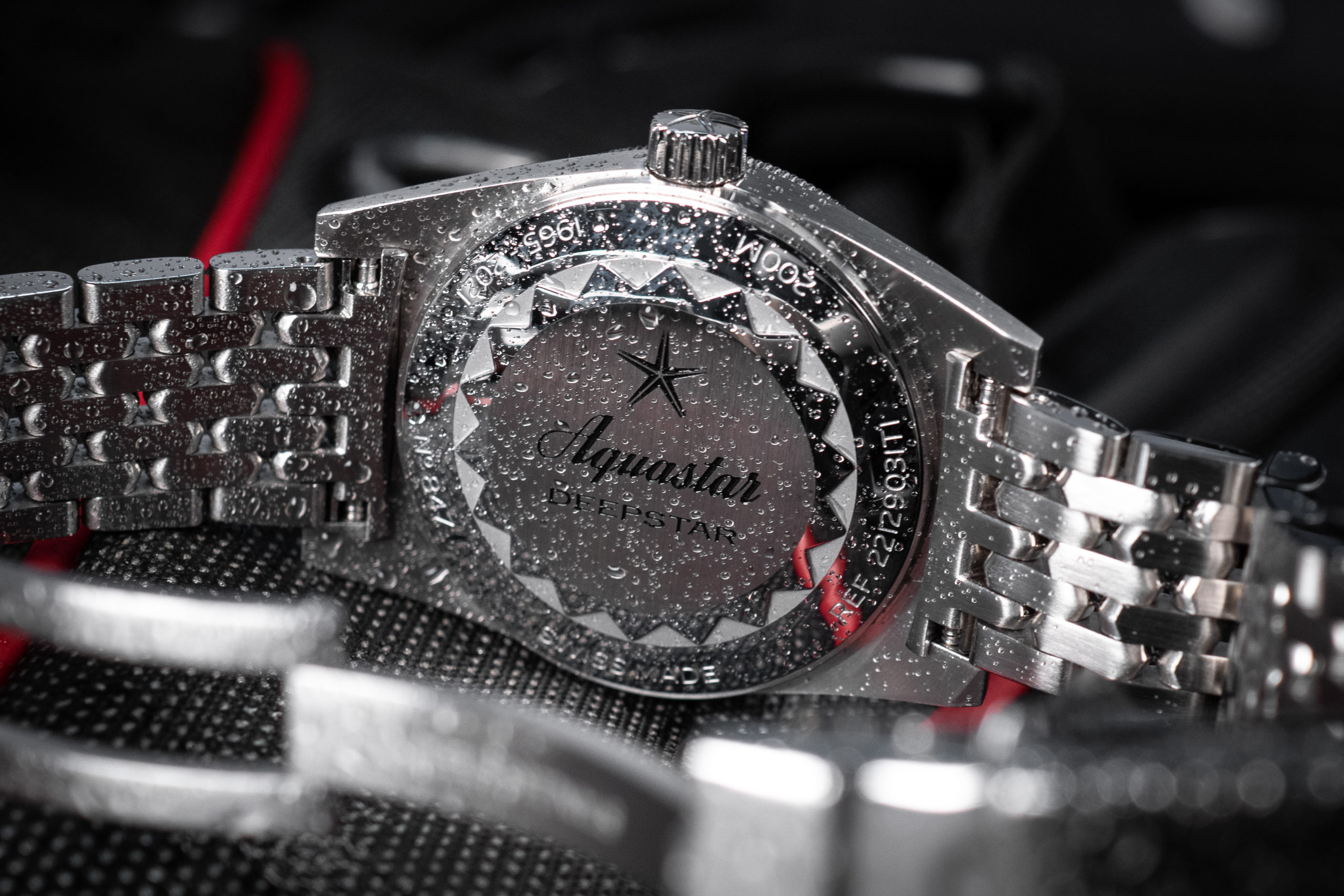 CASE BACK: Stainless steel case back with Aquastar engraving